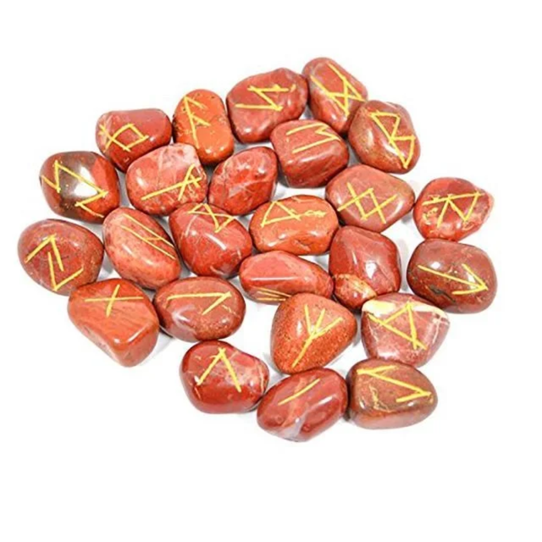 Each stone is meticulously crafted from high-quality black agate, green jade, or red jasper, showcasing a stunning finish that highlights their unique textures and colours. Adorned with elegant gold writing, these stones not only serve as powerful tools for guidance and insight but also make for striking decorative pieces in any space. Whether you are a seasoned practitioner or a curious beginner, these rune stones will elevate your spiritual practice and add a touch of sophistication to your collection.